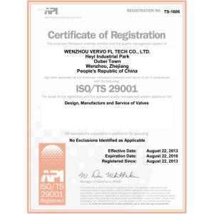 VERVO valves produce control fully under APIQ1 and ISO9001 system.
